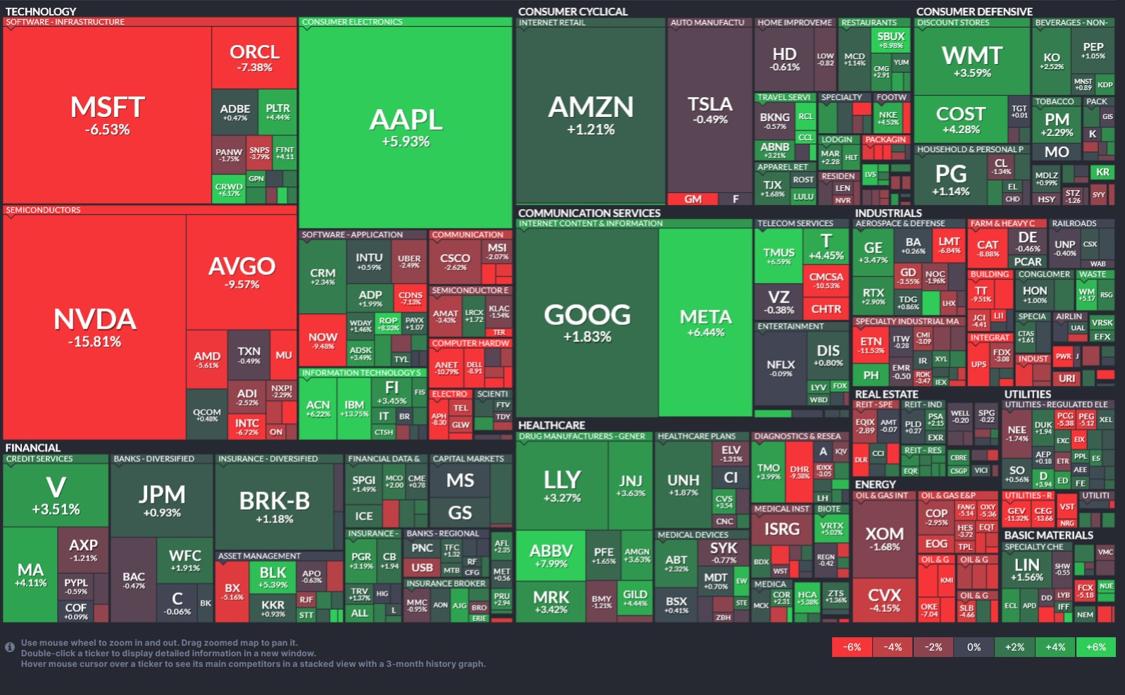 Mithilfe der Sektorrotation sieht man, wie das institutionelle Geld rotiert. Hier siehst du die S&P 500 Heatmap mit der Wertentwicklung der letzten Woche.